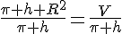 - h est l'abscisse => V = pi × R2 × x