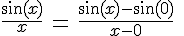 Bonsoir, pourrais je savoir s'il vous plait pourquoi limite quand x tend vers 0 de (sin x)/x=1 ? ce n'est demontré nul part ni dans mon manuel ni dans mon cours