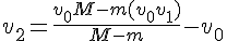 v2= ((v0.M - m.(v0 +v1) / (M-m)) -v0 sans rien developper juste en passant tous les termes de l'autre côté mais lorsque je passe aux calculs des normes à partir de cette egalité vectorielle mon résultat est faux