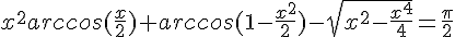 Je suis en première S, et mon professeur de SVT (oui de SVT) nous a donné à moi et un ami une énigme, apparemment classique : on a un champ circulaire (de rayon 1), on accroche une chèvre à une corde fixé sur le bord du champ, quel doit-être la longueur de la corde pour que la chèvre n'est accès qu'à 50% de l'herbe. Donc j'ai avancé "tranquillement" sur ce problème beaucoup plus complexe que prévu. Pour finalement arriver à une équation juste (en tout cas si j'écoute geogebra et ma casio, donc x vaut environ 1.159), mais ... pas simple ;-; ... en tout cas j'ai pas trouvé le truc...