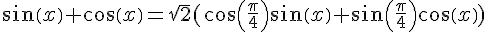 sin x - cos x = 0 ; je trouve x = pi/4