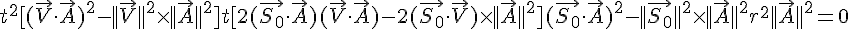 Et j'ai cette formule qui me permet de calculer le rayon au carré en fonction des 3 vecteurs et d'un temps: