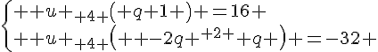 On sait que u(4) + u(5) = 16 et que u(5) + 2u(6) = -32