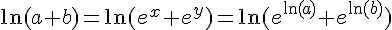 NB : Il me semble que la question posée est "existe-t-il une formule - pas nécessairement algébrique- qui permet de calculer ln(a+b) à partir de x=ln(a) et y=ln(b) ? " or cette formule existe :