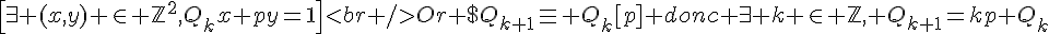 Envoyé par gg0 Ça ne suffit pas, tu ne démontres pas que Q(k+1) est premier avec p Cordialement. Théorème de Bezout ?