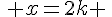 Toutes les valeurs de k entier relatif conviennent : il y a deux familles de solutions pour les x....