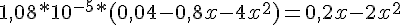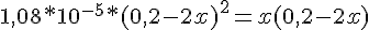 1,08*10^-5 = x(0,2+x) / (0,2 - 2x)²