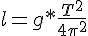 Bonjour à tous, Équation liée à la période d'oscillation lié à un pendule simple et la longueur du fil. où g est la gravitation de la Terre , 9,806 m/s