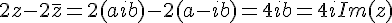 bonjour je voudrait vous poser une question pouvez vous m'expliquer 2z-2z(barre) j'ai tourner de nombreuse fois cette partie de mon équation mais sa m'a ramener à 2z+2z(barre) pouvez vous m'expliquez si ma démarche était bonne ou bien il faut faire autre chose. merci d'avance à ceux qui m'aiderons.