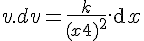 d'où dt =dx/v , a= v.dv/dx soit v.dv=a.dx