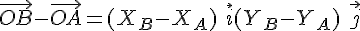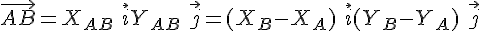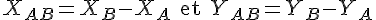 ça s'applique à toutes les composantes XAB(vecteur) = XB-XA, YAB(vecteur) = YB-YA, ZAB(vecteur) = ZB-ZA (à trois dimensions, on peut avoir des vecteurs en n'importe quel nombre de dimensions).