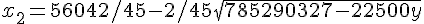 Les solutions de ton équation " (-0.0225*(x^2))+(56.042*x)+5.061 6=y" soitsont