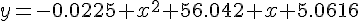 j'ai une fonction qui est : (-0.0225*(x^2))+(56.042*x)+5.061 6=y