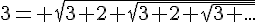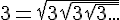 Voici quelque chose d'amusant, écrire 3 sous la forme de racines imbriquées à l'infini.