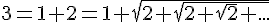 Ce qui est intéressant c'est qu'on traduit une égalité exacte de base (3=1+2) en racines imbriquées en l'infini.