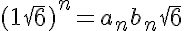 Bonjour, a partir de (1 + racine(6) )n = an+bnracine(6) Je doit calculer an+1 et bn+1. Mais je c'est pas comman mi prendre. Merci de votre aide.