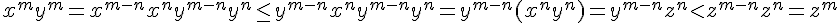 Mais, lorsque n n'est pas diviseur de 2 c'est-à-dire, lorsque n>2 (la fameuse condition!), il faudra que a, b et c soient trois produits de même puissance m=kn (k=1,2,3...) c'est-à-dire que