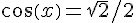 Résoudre dans R puis dans ]-pi ; pi ] les équation suivantes : cos2x = ( racine carré de 2 )/2 et sin2x = 1/2