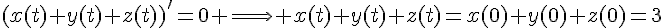 Determiner les fonctions x, y, z, derivable sur R telles que pour tout reel t :