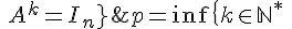 Soit A une matrice complexe nxn telle que A^p = In. p est d'ailleurs le plus petit entier vérifiant ceci.