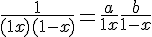 c'est 1/[2(1+x)]+1/[2(1-x)]