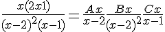 A/(x-2)+B/(x-2)^2+C/(x-1)
