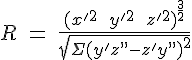 Merci pr ta réponse, mais ma question concernait l'expression littérale du rayon de courbure en fonction de x',y',z',x",y",z" avec probablement un exposant 3/2 au numérateur du style (x'²+y'²+z'²)^3/2 / (y"x'-y'y" + ... )