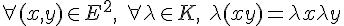 La première étape serait de montrer que R est un groupe abélien, puis de montrer plusieurs (quatres) propriétés d'application K*R dans R.