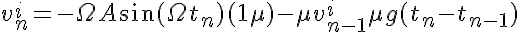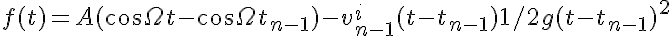 où tn est l'instant du nième rebond, vin la vitesse après le rebond et vfn la vitesse avant le rebond.