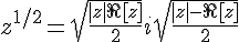 La plupart des librairies de calcul (par exemple matlab ou python numpy) définissent la valeur principale de la racine carrée d'une nombre complexe z=x+iy comme étant :