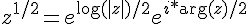 Cette définition utilise une branche de coupure placée sur le demi-axe x<0 et impose donc que l'argument de z soit compris entre -pi et +pi.