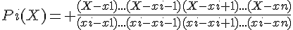 Pi(X)= (X-x1)...(X-xi-1)(X-xi+1)...(X-xn) / (xi-x1)...(xi-xi-1)(xi-xi+1)...(xi-xn)