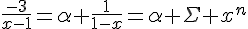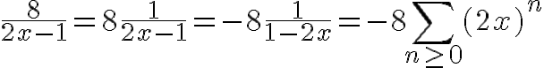 [ - 3 / (x-1) ] + [ 8 / (2x-1)] puis on nous a donné que pour la fonction 1 / (1-x) sa série entière est ∑ x^n