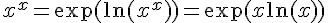 La fonction x^x n'est définie sur par la formule avec l'exponentielle. Elle se dérive alors facilement en