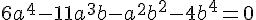6p^4-11p^3q-p²q²-4q^4 =0