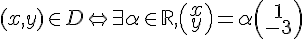 Dans le plan vectoriel (coordonnées x et y), considère la droite vectorielle D d'équation 3x+y=0.