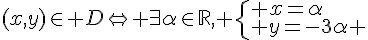 Comme 3x+y=0 <=> y=-3x, c'est facile ; il suffit de dire que x peut prendre n'importe quelle valeur et que y vaut -3x :