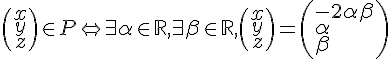 donc X€P ssi X=(-3y-z,y,z,t)=y(-3,1,0,0)+z*(-1,0,1,0)+t*(0,0,0,1)