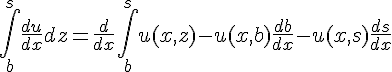 où u est une fonction des variables z et x. s et b sont des constantes selon z mais pas selon x. Je n'ai pas réussi à afficher l'exposant de (s-z) qui vaut -2/9. Je ne sais vraiment pas comment la résoudre. J'ai voulu essayer par parties en utilisant du/dx comme étant la dérivée de sa primitive, mais quoi qu'il arrive, je n'arrive pas à isoler l'un ou l'autre terme. Avez-vous une idée? Si cela ne va pas, je l'entrerai comme ça dans mon programme en C pour intégrer numériquement, mais j'aimerais essayer de le faire analytiquement si c'est possible.