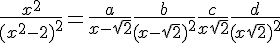 f(x)= x2 / (x2-2)2 = (ax+b) / (x2-2) + (cx+d) / (x2-2)2