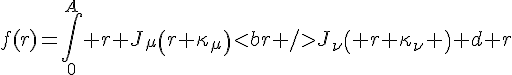 f(r)=int from 0 to A r*J sub%mu(r%kappa sub{%mu})*J sub%nu(r%kappa sub{%nu})dr