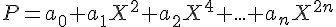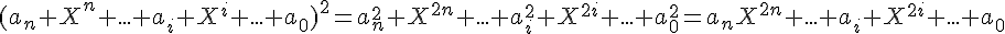 ii) on a donc (P1+...+Pn)²=P1²+...+Pn² pour tous polynômes P1, P2,...,Pn de F2[X] (soit par une réurrence facile ; soit en "admettant" le résultat, admettre étant ici un grand mot : généralement ceux qui manipulent F2[X] ont depuis bien longtemps montrer ce type de récurrence)