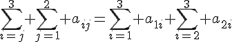 C'est une somme "triangulaire"Je vais sans doute paraitre grossier mais pour moi ca ne veut rien dire. J'ai du mal a comprendre le i=j+1 en fait :X car si on développe dans un premier temps le sum de droite, tous les j disparaissent.. enfin , j'arrive pas a voir a quoi ca correspond>