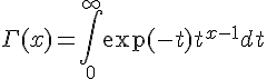 Gamma (x) = integrale de 0 à (+oo) * exp (-t) t^(x-1) dt.