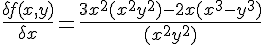 Il faut donc que je calcule déjà les dérivées partielles et c'est là mon souci. Je pense que c'est juste dû à un manque de technicité. Si je dérive f(x,y) par rapport à x en fixant y, j'obtient: