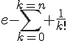 0 <= e - sigma 1/k! <= 3/(1+n)!