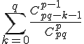 Somme(de k=0 vers q)[[p*C(q,k)]/[(p+q-k)*C(p+q,k))]]
