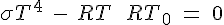 avec R la résistance thermique, T la température de la face externe, l'inconnue et T0 la température de la face interne, une constante