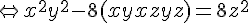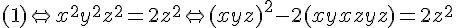 ON a donc un série de solutions avec x+y+z=0, qui entrainent xy=0, donc par exemple x=0 et y=-z
