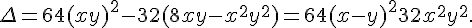 Puisque pour tout entiers x et y, alors il reste à savoir pour quelles valeurs de x et y le polynôme en z admet des racines entières. Cela revient à résoudre, avec k un entier relatif :